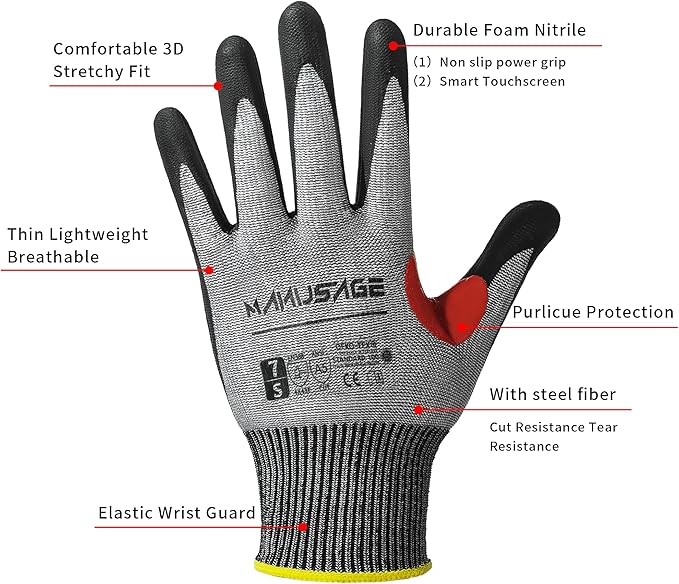 - Touchscreen for Modern Workplaces: Stay connected without compromising safety. Our cutting gloves are touchscreen compatible, allowing seamless use of smartphones. The ultra-thin design ensures breathability and comfortable feelings