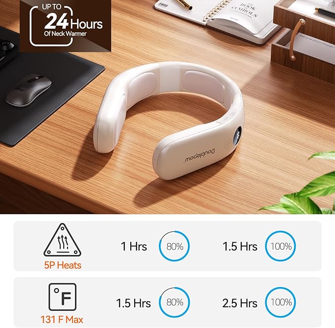 - 10,000mAh High-Capacity Neck Warmer: A sleek, exquisite neck warmer. 10000mAh high capacity can provide continuous heating for 5 hours, heating in 4 seconds and dual-sided warming your body.