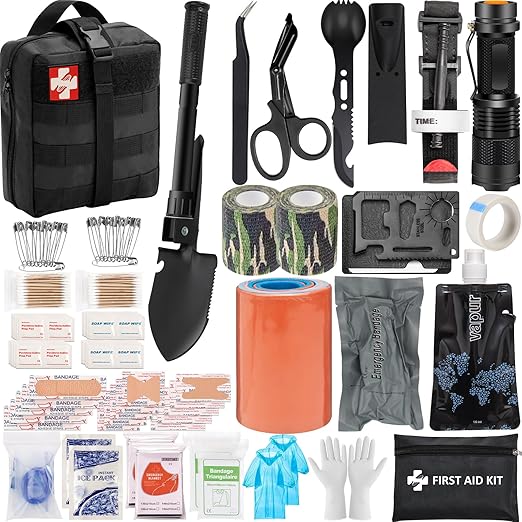 145 Piece Emergency Survival First Aid Kit – Splint – Tourniquet – Trauma Wound Care – Survival Gear – Item #8161