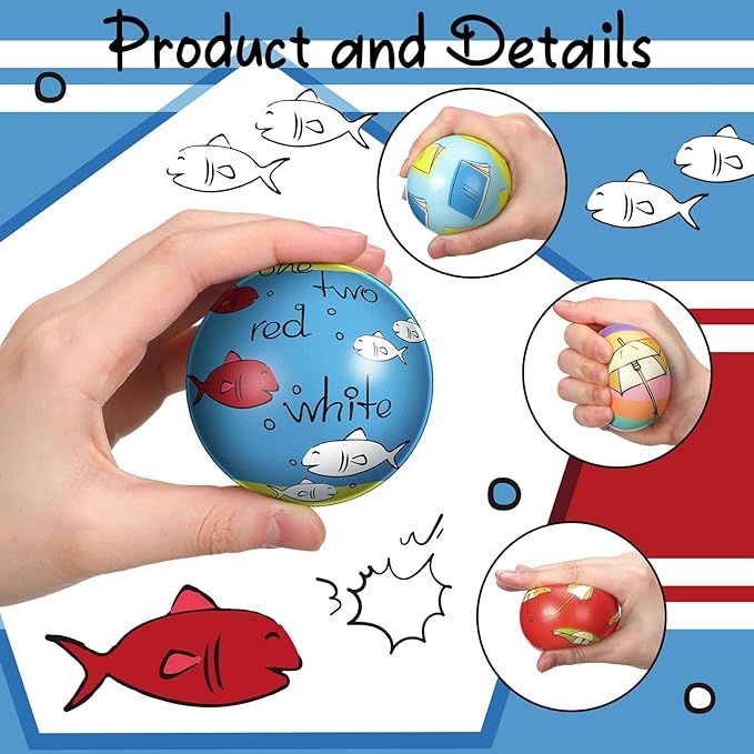 • Different Design: the stress balls feature 8 different elements patterns; The designs include blue elephant, fish, Umbrella overload with stress balls