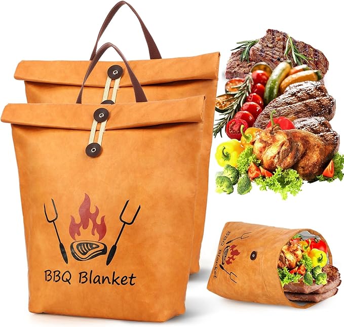 - Portable Design: wide mouth design allows for quick placement or removal of grilled meat; Envelope buckle and portable handle ensures safe food storage and easy to carry; BBQ brisket blanket can be folded easily to save storage space and make your life more convenient; Easy to clean and reusable, just wipe gently with a damp cloth, or wash with soap and warm water