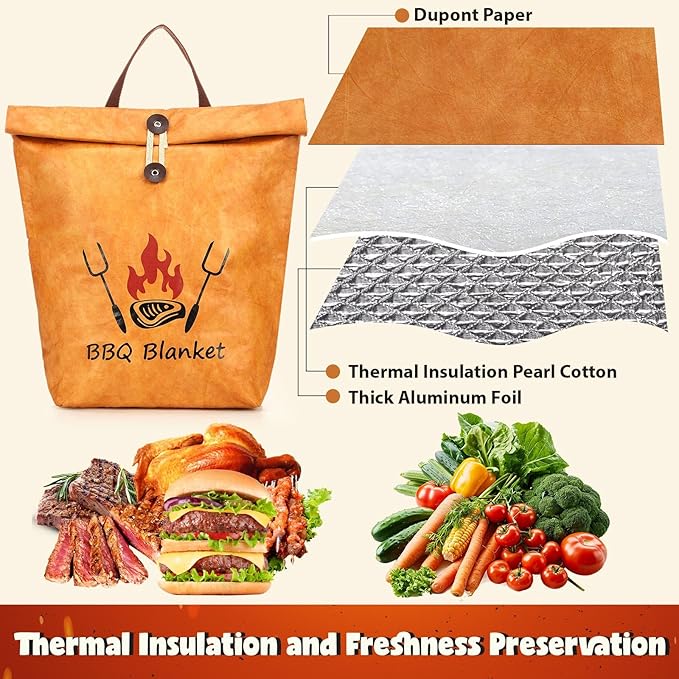 - Insulation Performance: the insulated meat resting bags made of quality Dupont paper and thermal insulation cotton, with a three layer thermal insulation fabric design, which effectively maintains the optimal temperature of the food, locks in the gravy, and ensures that the barbecued meat is tender and juicy, and tastes more delicious