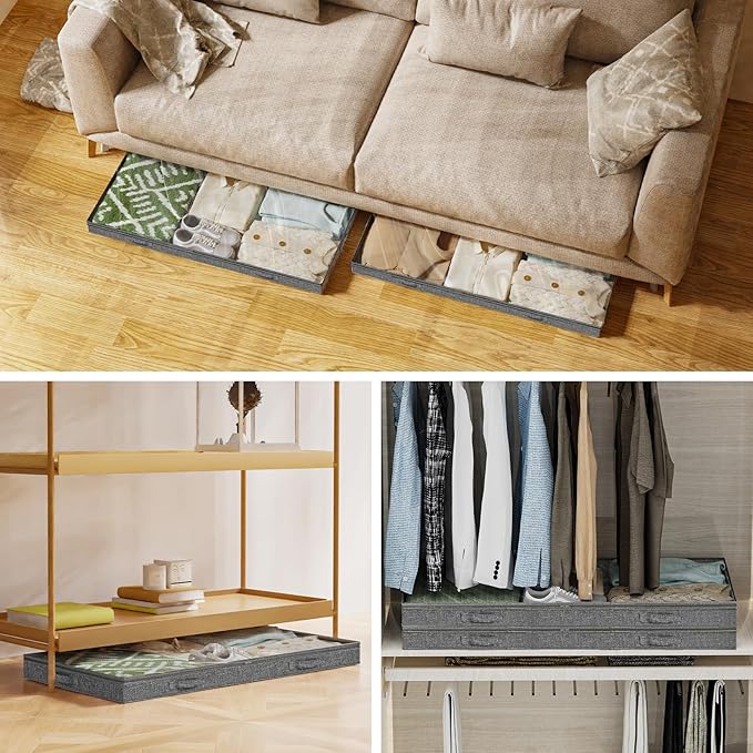 - Premium Material: This under bed storage container is made of high-quality, odorless composite linen fabric, which is breathable and waterproof. No-Structure and soft edge design make it easy to use in tight spaces.