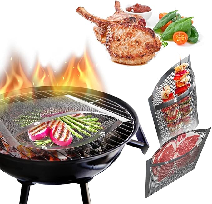 - Reusable Mesh Grill Bags for easy BBQ Grilling of Vegetables, Fish, Shrimp, and More