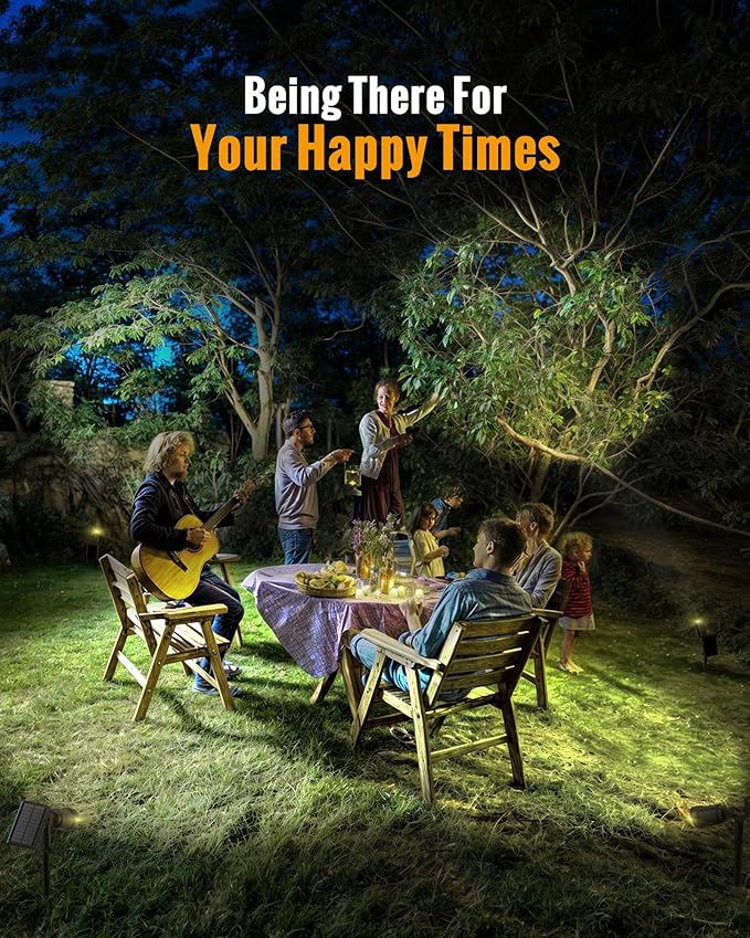 - Adjustable Solar Lights Outdoor – Solar landscape lights outdoor have independently adjustable lamp heads and solar panels. You can tilt the solar panel 180° to capture sunlight effectively and improving solar energy conversion efficiency; and adjust the light direction up to 90° for precise illumination wherever you need it
