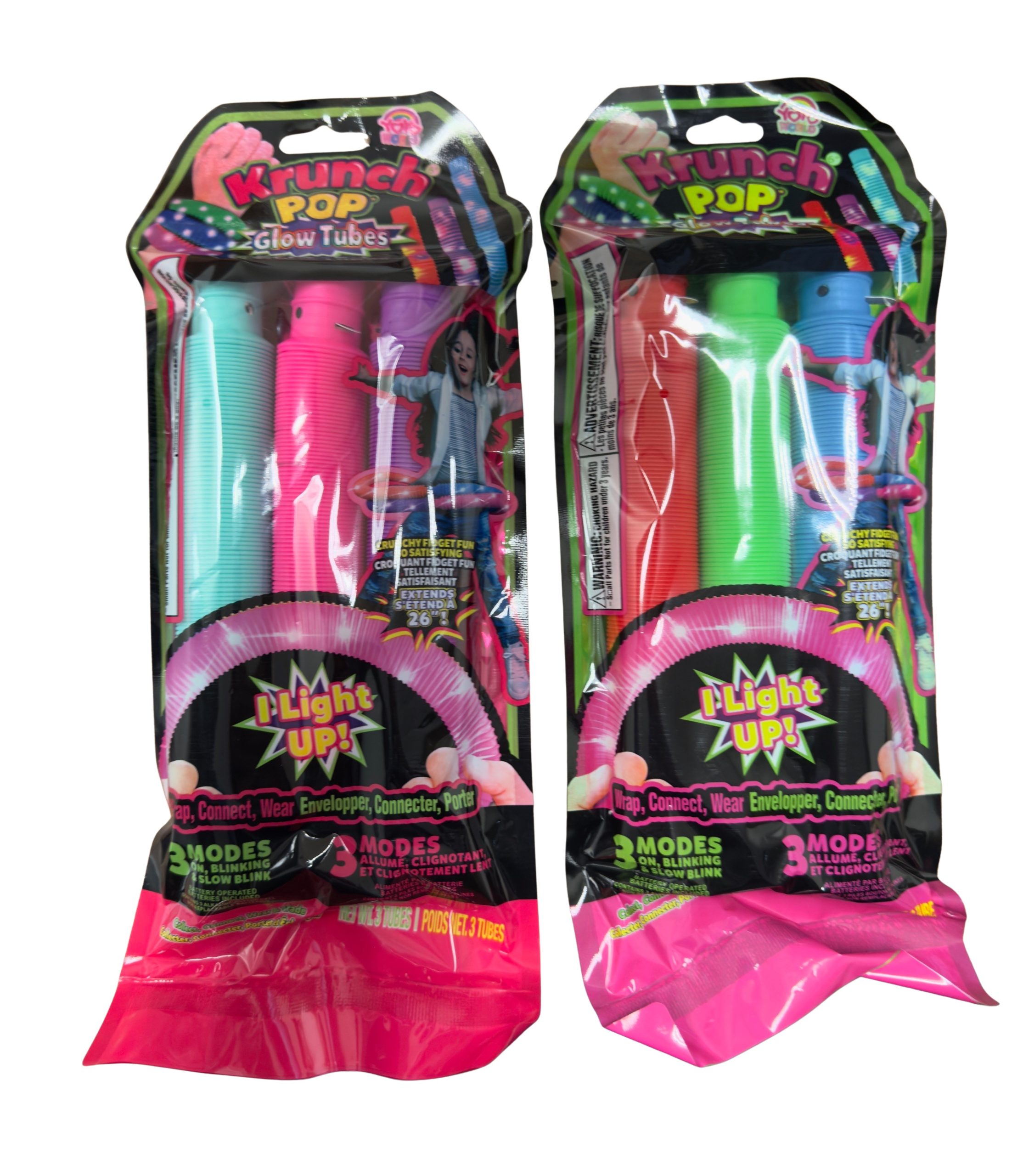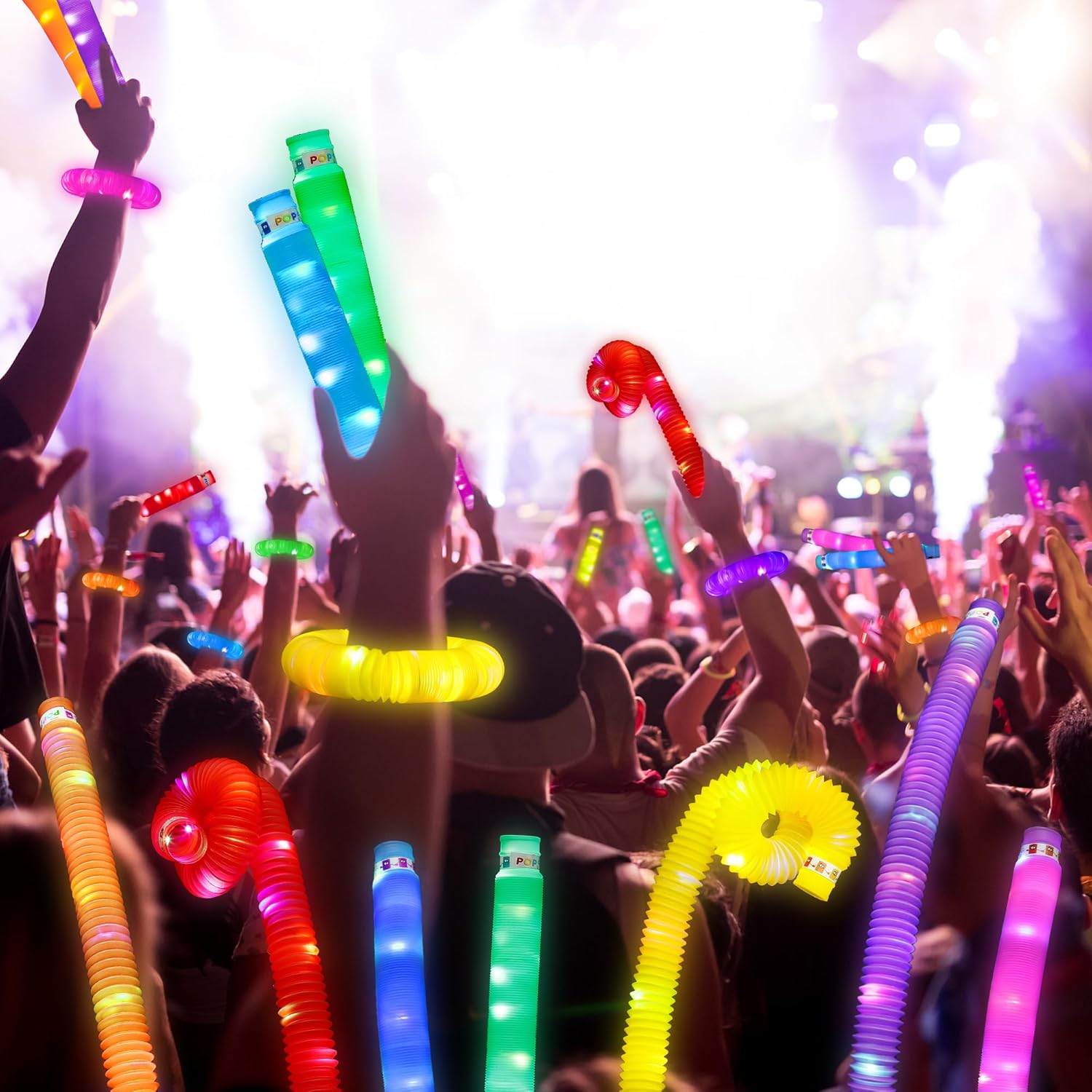• 𝗨𝗻𝗶𝗾𝘂𝗲 𝗟𝗶𝗴𝗵𝘁 𝗨𝗽 𝗣𝗼𝗽 𝗧𝘂𝗯𝗲𝘀: 3 Pack Light Up Pop Tubes – Assorted Color Packs