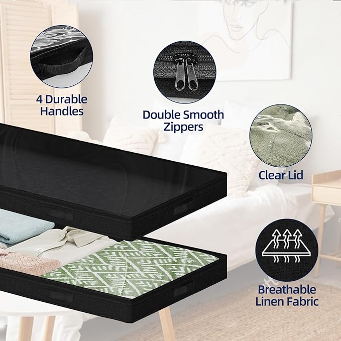 - Premium Material: This under bed storage container is made of high-quality, odorless composite linen fabric, which is breathable and waterproof. No-Structure and soft edge design make it easy to use in tight spaces.