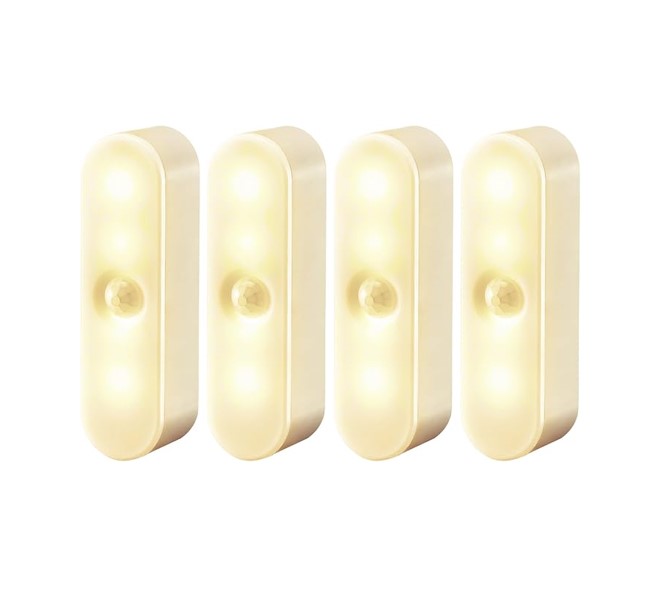 4 Pack Motion Sensor Lights – Indoor – USB Rechargeable – Stick on Anywhere – Yellow/Gold – Item #7527