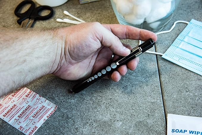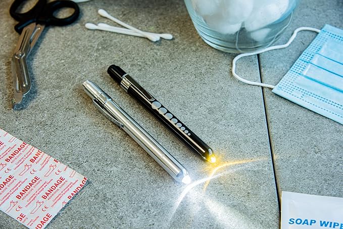 - 2 Warm Light Pens for checking eyes and features a pupil gauge