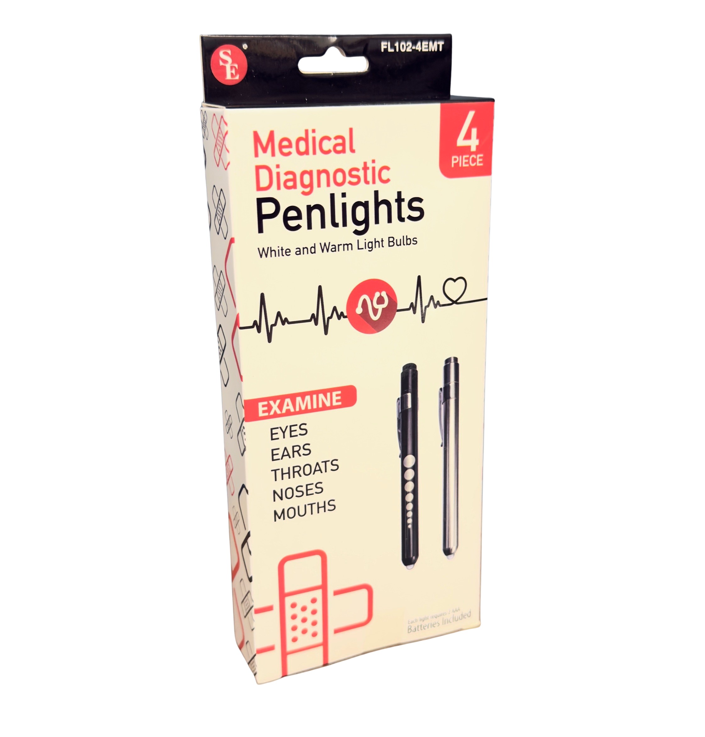 - 4 Medical Diagnostic Penlights including 2 White Light pens and 2 Warm Light pens