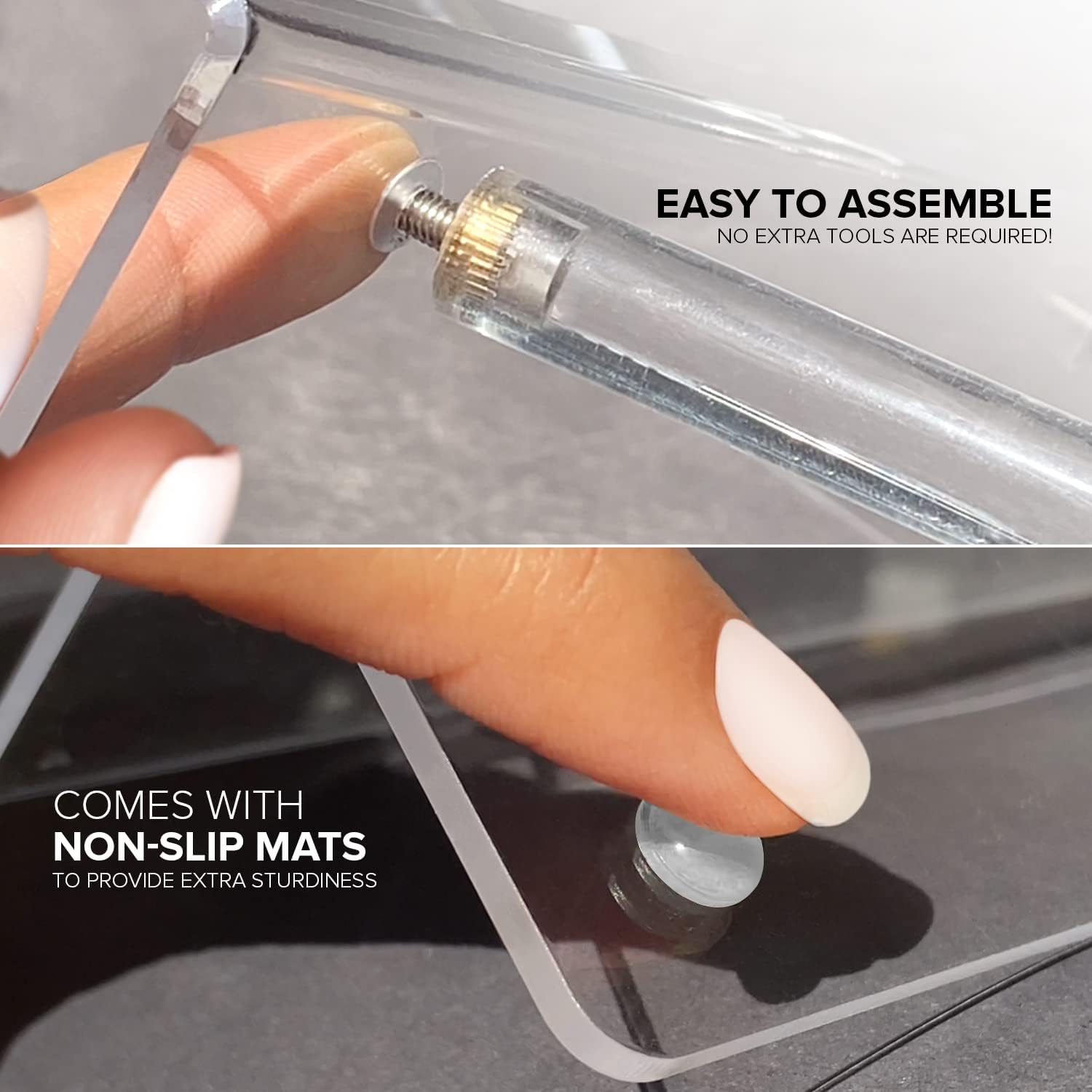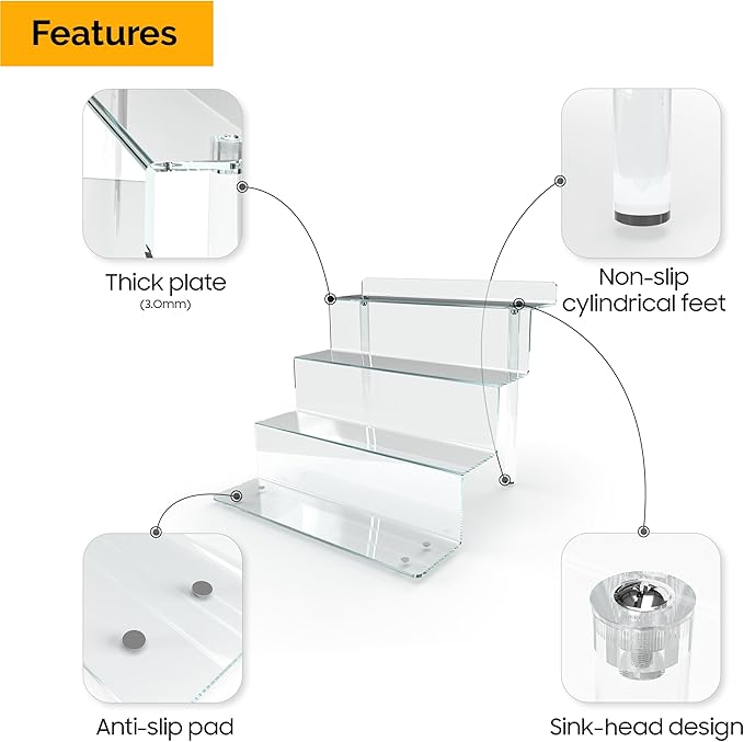 - Easy Assembly: No screwdriver needed for our acrylic shelf riser! Hand-screw the perfume shelf, perfect as a tiered display stand. Utilize as a cologne shelf with ease.