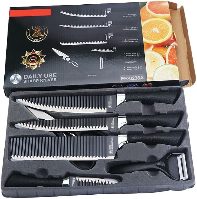 6Pcs Kitchen Knife Set 6-piece combination knife set, professional kitchen knife set gift box, high-carbon stainless steel forged kitchen knife set, sharp kitchen knife set, family knife set, for cooks to peel and slice High Carbon Stainless Steel, High Carbon Steel