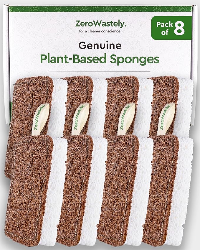 8 Pack – ZeroWastely Natural Sponges – Eco Friendly – 100% Coconut Sponge – Zero Polyester – Item #7388