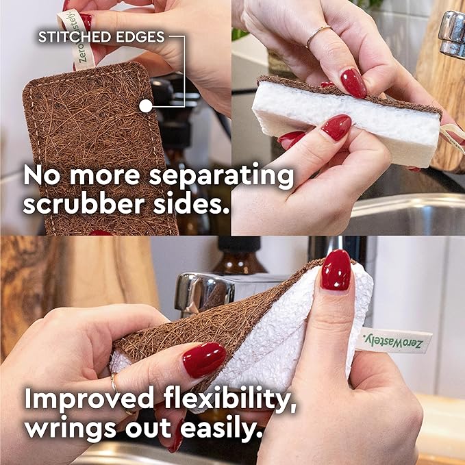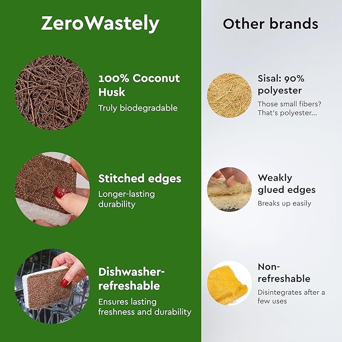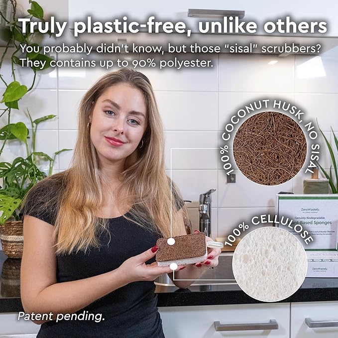 - GENUINELY PLASTIC-FREE, UNLIKE THE OTHERS: Almost all “plant-based” sisal sponges out here contain 90% polyester scrubbers and aren’t biodegradable at all! Embrace a new way forward with our 100% organic sponges, crafted from coconut fibers, cellulose, and cotton stitching.