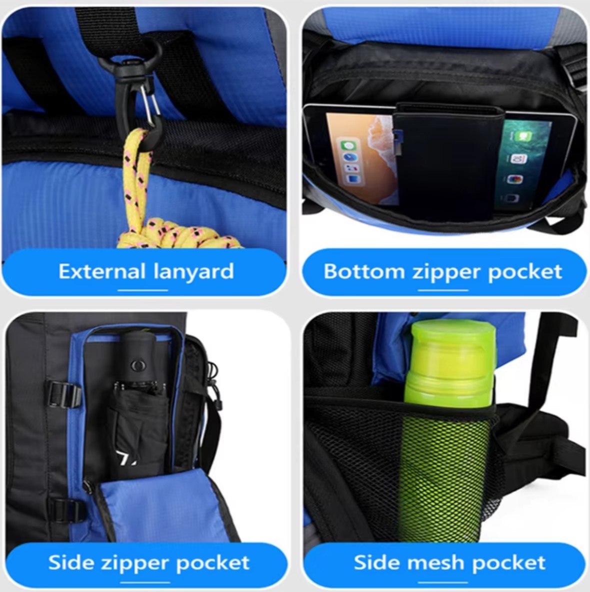 - Camping Backpack Features: Ade of high-quality nylon fabric for durability, life waterproof and tear resistant. To keep your product out of the water, we have specially equipped a rain cover to prevent water and dust from entering the backpack, protecting your valuables from rain and keeping everything dry.