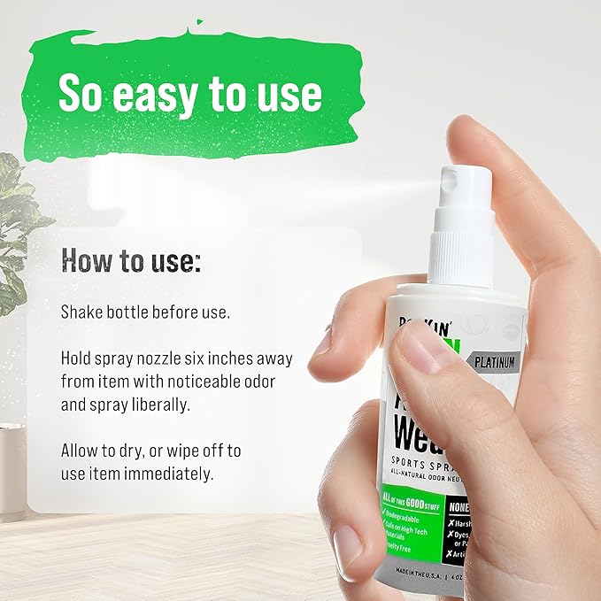 - Odor Elimination for Activewear – Don’t let lingering odors get you down. Our specialized fabric and shoe odor spray works wonders! When laundry isn’t an immediate option, our fabric and shoe freshener spray leaves behind minty, odor-free results.