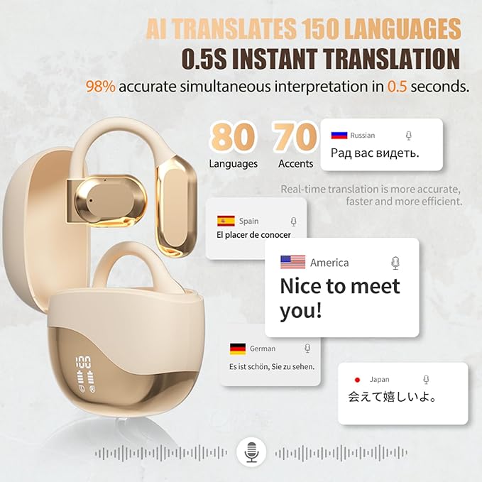 - 3-in-1 Functionality and HD Sound Quality: These language translator earbuds offer versatility and convenience for work and everyday life, combining translation, music playback, and phone calls. The translator earbuds provide HD sound quality to ensure clear audio, regardless of the occasion.