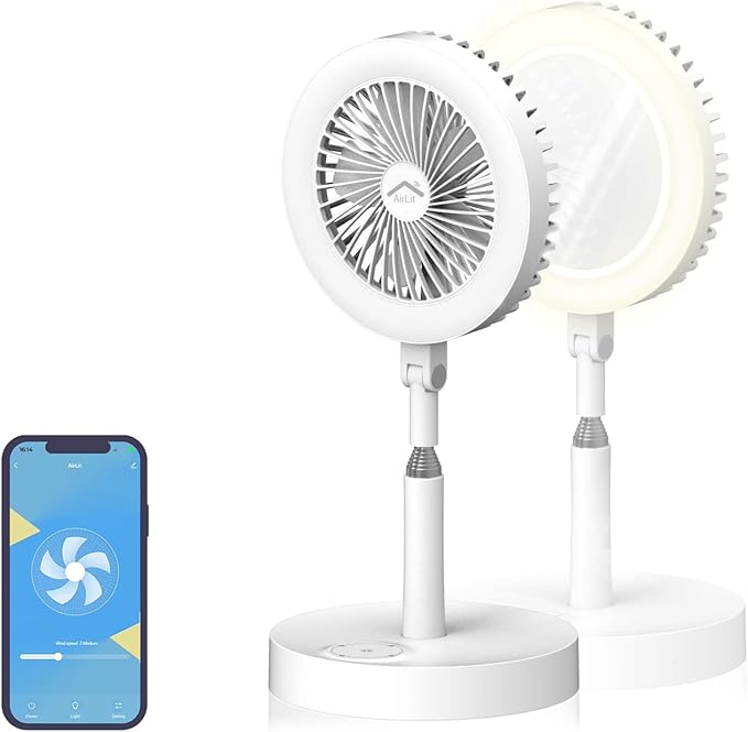 AirLit – Portable Smart Desk Fan, Mirror and Ring Light – App Controlled – Flexi Rotation – Voice Assistant – Item #7519
