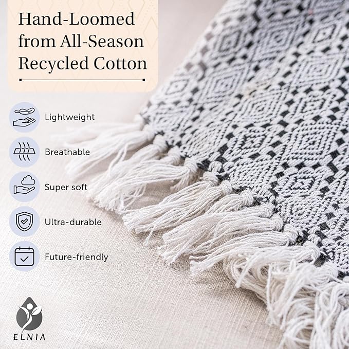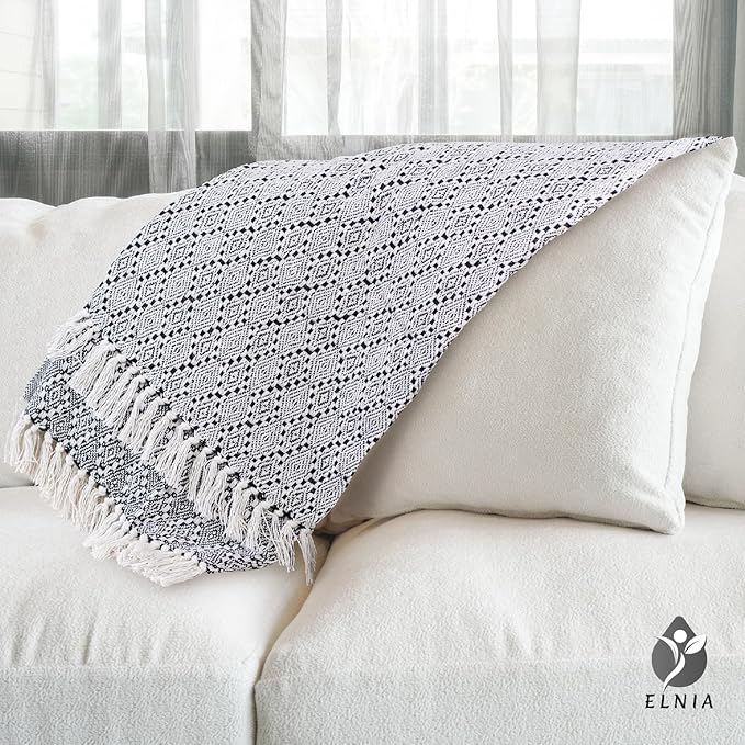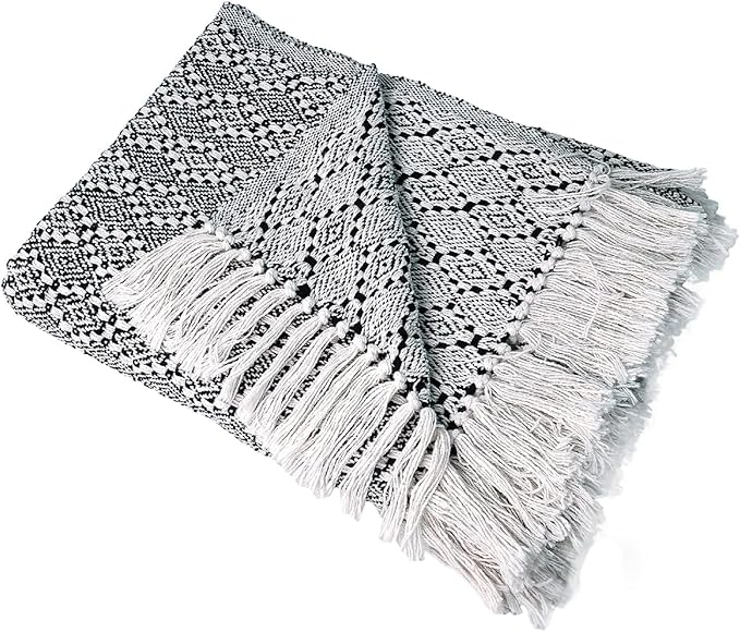 - Boho Flair with Reversible Design Add a touch of Boho style to your space with All Season Throw Blankets for Couch’s unique design. The beautiful woven diamond pattern and fringed edges create a visually striking statement piece. This boho throw blanket is reversible, featuring a trendy black and cream color scheme on both sides.