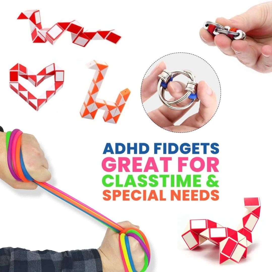 Discover the 30-piece Fidget Toys Set, a complete collection of anti-stress sensory toys ideal for both children and adults.