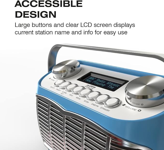 - CLASSIC STYLING: The Detroit DAB Radio from Audible Fidelity combines timeless motor-city vintage design with the very latest in DAB/DAB+/FM digital radio technology performance, for a great addition to kitchen sides or bedroom tables. The accessible design houses large buttons and a clear, easy to read LCD display with station info.