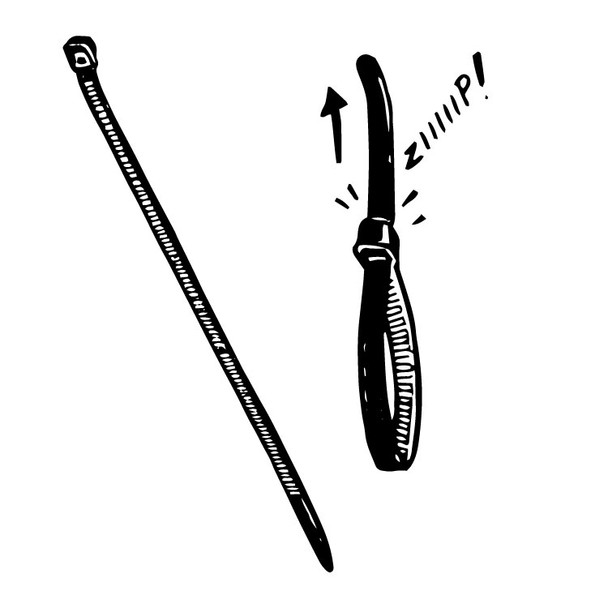 Call ’em what you like— fabric tie wraps, wire ties, zip ties or cable ties—but any which way, they do a heck of a job of bundling up your stuff. This bag of (25) black plastic tie wraps (aka all of the above) from Shelter Logic will help you keep your stuff together. Each tie measures 8″ long x 3/16″ wide. Package says they’re for bundling fabric, but the ties don’t discriminate.