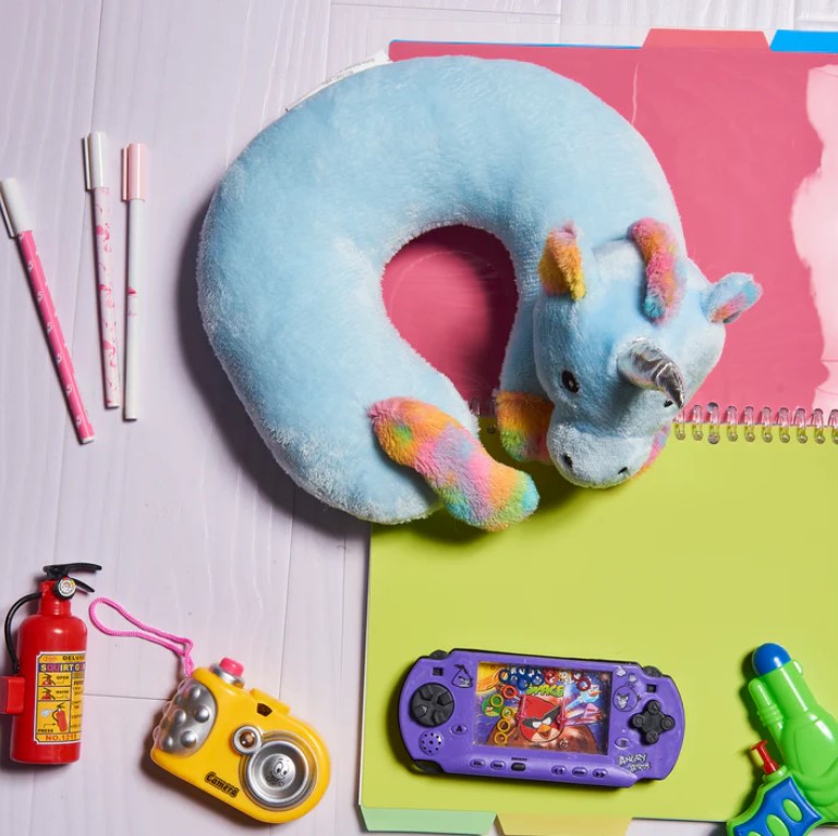 - Great for traveling with children who may fear airplane travel or just for comfort in general through cheerfully designed pillows