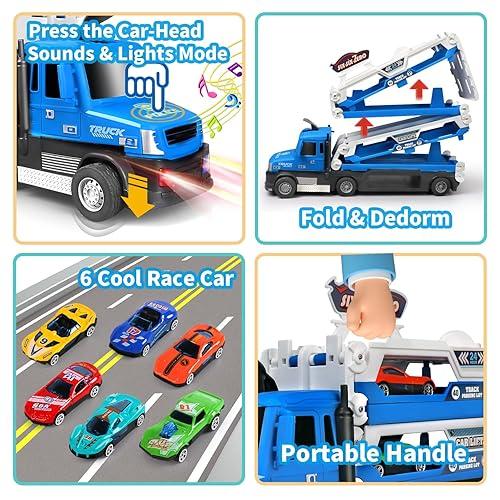 - Foldable Track Design: The Hauler truck toys with foldable track design, allow kids to design their own thrilling racing environment. With the foldable design, this car carrier truck is ready to race, wherever you go.