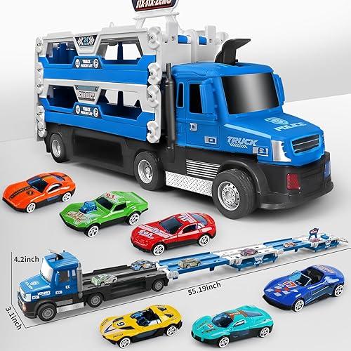 - Carrier Truck Toys & Racing Car Set: This kids car toys come with 140CM (4.6FT) long carrier truck plus 6 cool metal racing cars! Press the catapult competition function, which can be played by a single player or multiplayer competition!