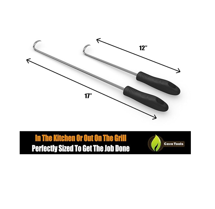 Cave Tools Food Flipper and Meat Hook for Grilling – Large (17 Inch) + Small (12 Inch) – Item #8724