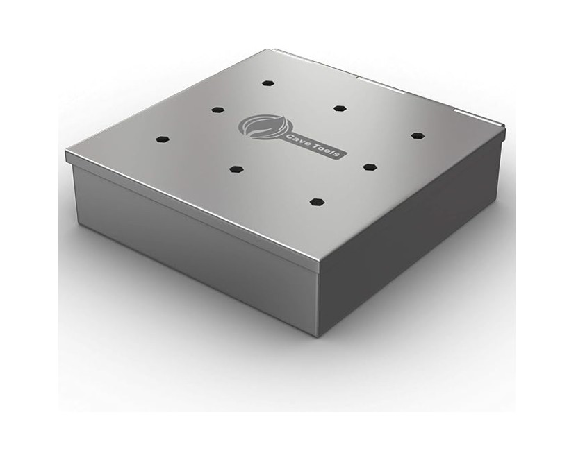 Cave Tools Grill Smoker Box for Wood Chips – Stainless Steel with Hinged Lid – Small – Item #8722