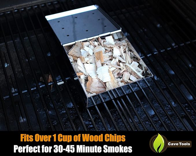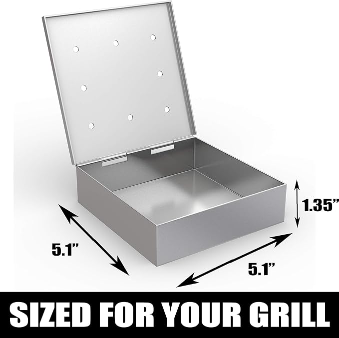 - Durable Metal, Easy Storage: Hinged lid makes easy access to baskets to add wood chips; stainless steel design prevents warping making it a reusable chip rack