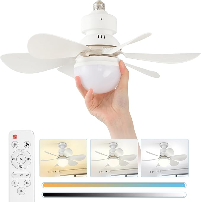 • Dimmable LED Light: With 30W, 1500 lumen, our LED light bulb fan allows for adjustable color temperature (3000K-6500K) and brightness (10%-100%). Transition seamlessly from warm to cool tones, enhancing any ambiance and customizing lighting for any occasion.