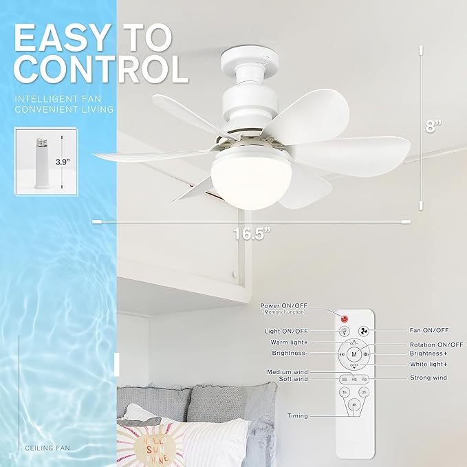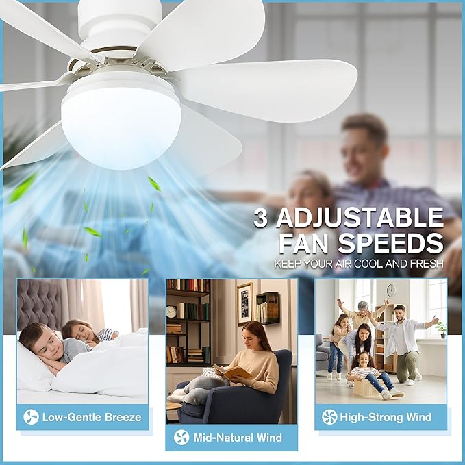 • 3 Wind Speeds and Quiet Operation: Measuring 16.5 inches with 6 white fan blades, our ceiling fan light offers enhanced airflow compared to smaller models. Enjoy three adjustable fan speeds to suit your preference, designed for light sleepers to create a comfortable and quiet sleeping environment.