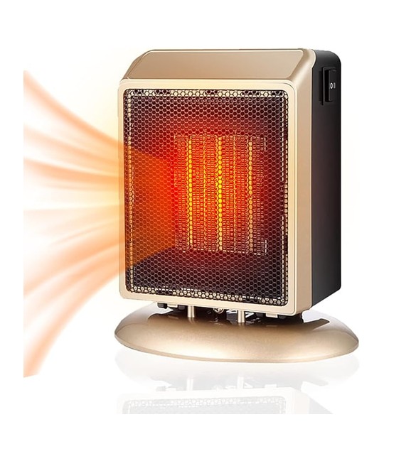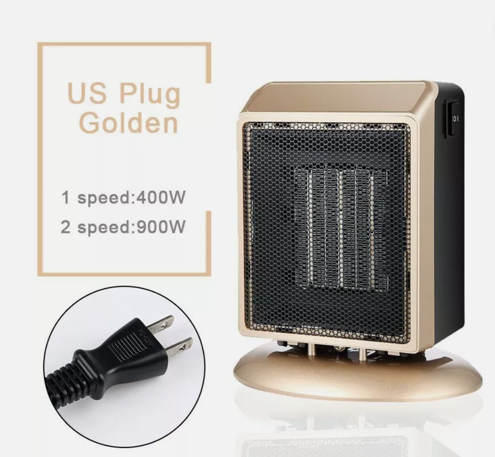 Ceramic Space Heater – 900W Electric Heater – Two Modes – Automatic Off When Tipped – Gold Toned – Item #7655