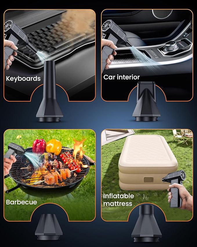 - Versatile Cleaning Solution: The electric air duster is equipped with 4 nozzles and 10 brushes, perfect for tackling hard-to-reach areas such as computer keyboards, laptops, cameras, and car interiors. It’s also great for outdoor activities such as inflating and outdoor fires, making it one of the coolest gifts for men women who value practicality.