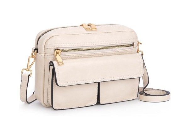 Crossbody Shoulder Bag – Vegan Leather – Crossbody with Adjustable Strap – Cream – Item #7763