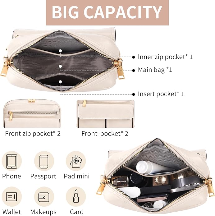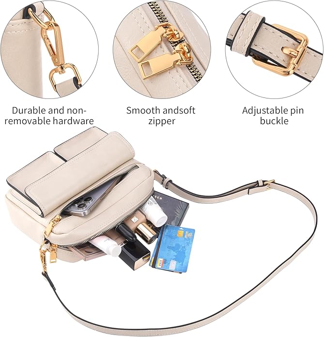 • Multi-functional pocket: This small crossbody bags for women features 1 main compartment + 2 interior pockets + 1 front zip pocket + 2 flap pockets, keeping your items safe and tidy, it offers organized storage, and easily accessible at all times.