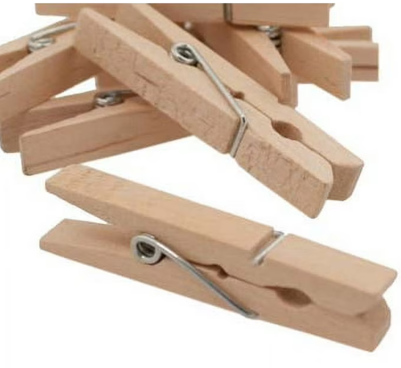 Bag of 30 wood clothespins with spring. The hardwood construction and heavy-duty spring will last through your most challenging laundry days
