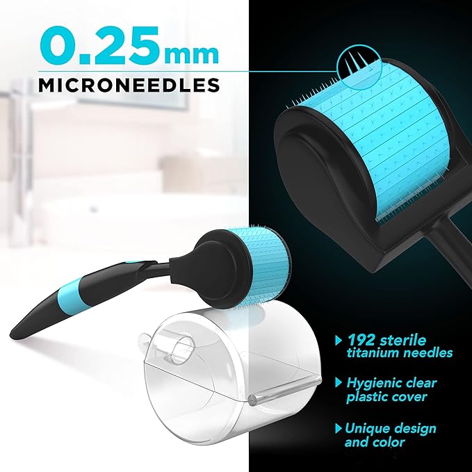 Derma Roller for Face & Body – 0.25mm Needle Roller Face – 192 Titanium Pin Roller – Item #8332
