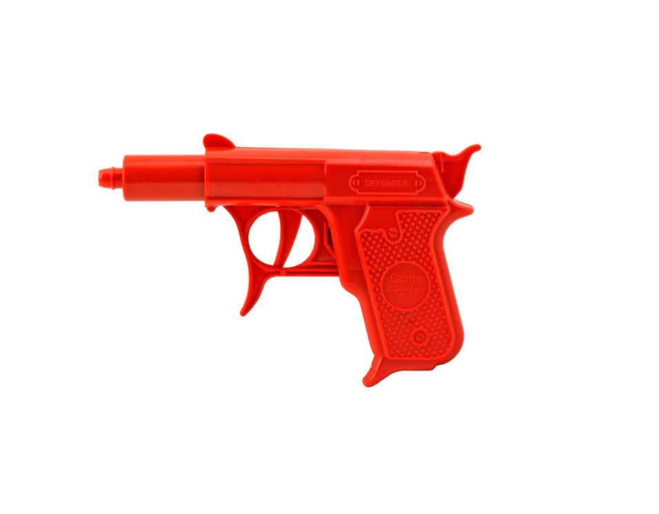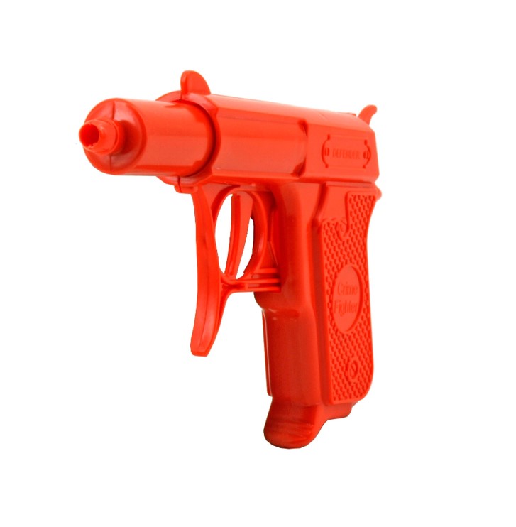 – A quick pull on the trigger and it shoots out a harmless potato pellet