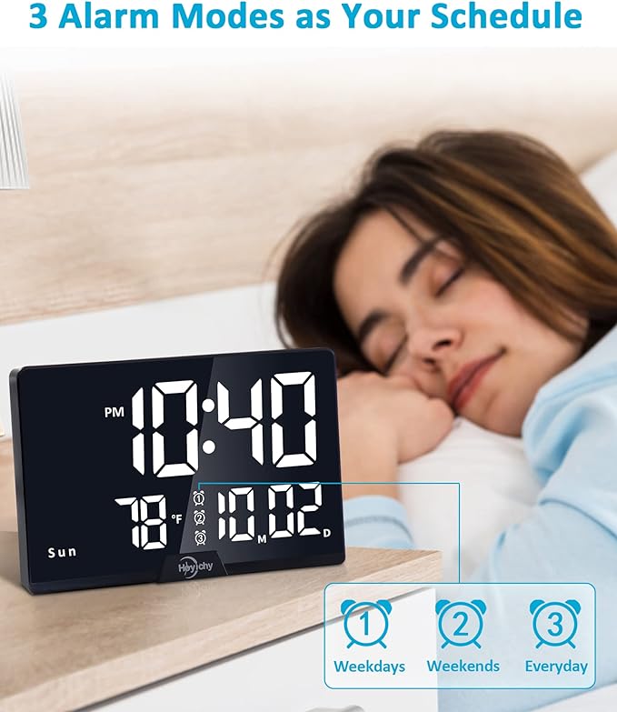 - 𝟯 𝗔𝗹𝗮𝗿𝗺𝘀 𝗳𝗼𝗿 𝗪𝗲𝗲𝗸𝗱𝗮𝘆𝘀, 𝗪𝗲𝗲𝗸𝗲𝗻𝗱𝘀 & 𝗘𝘃𝗲𝗿𝘆𝗱𝗮𝘆: The digital desk clock allows you to set three separated alarms, especially handy for family members who keep different schedules, also can remind the seniors and aged parents for daily meals or for taking medications on time. Set separate alarms to suit your different schedules and 7-5-2 alarm mode lets you set alarms for every day, weekdays or weekends. Never worry about waking up from your sweet dreams at weekends. 𝗡𝗢𝗧𝗘:𝗣𝗹𝗲𝗮𝘀𝗲 𝗦𝗲𝘁 𝗬𝗲𝗮𝗿 𝘁𝗼 𝟮𝟬𝟮4 𝗗𝘂𝗿𝗶𝗻𝗴 𝗦𝗲𝘁 𝗖𝗮𝗹𝗲𝗻𝗱𝗮𝗿 𝗳𝗼𝗿 𝗘𝘅𝗮𝗰𝘁 𝗗𝗮𝘆 𝗼𝗳 𝗪𝗲𝗲𝗸.