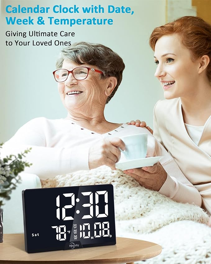 - 𝗕𝘂𝘆 𝘄𝗶𝘁𝗵 𝗖𝗼𝗻𝗳𝗶𝗱𝗲𝗻𝗰𝗲 & 𝗕𝗲𝘀𝘁 𝗚𝗶𝗳𝘁: Compact and stylish design makes the digital alarm clock both functional and decorative for bedroom, living room and office. Time, date, week, alarm and indoor temperature enrolls all in one. Best gift for the seniors, elderly, aged parents, the dementia, memory loss people, kids, teens, boys, girls, friends or families during any festivals like birthday, Christmas, etc.