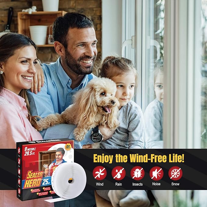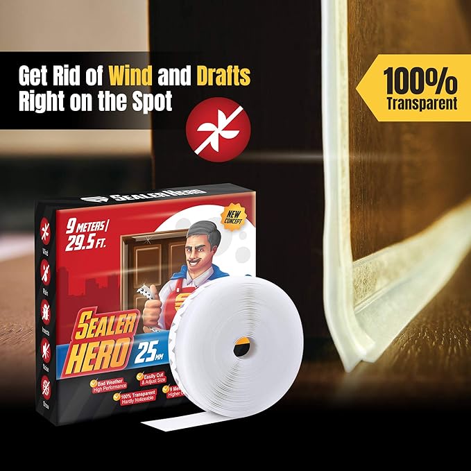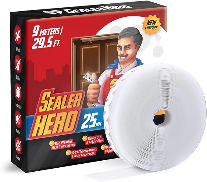 Door Seal Strip 25 mm Width – 9m (29.5 Ft) – Silicone Weather Stripping for Doors and Windows – Item #7128