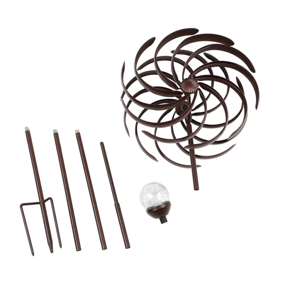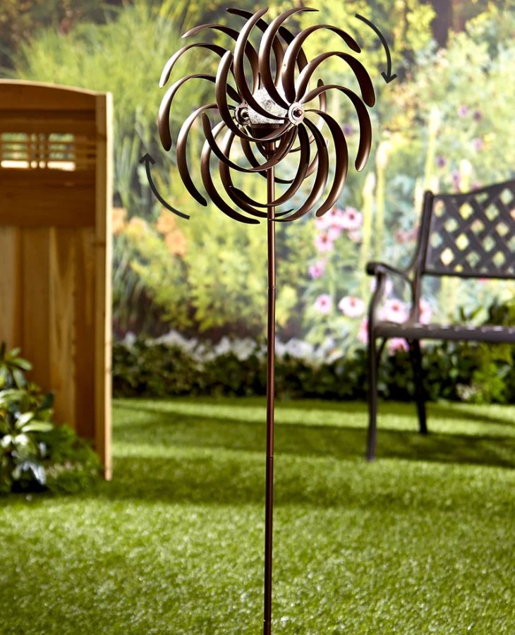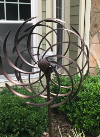 - STABLE & STURDY Spinner has a solid metallic construction with dual direction wind motion. The blades rotate in opposite directions on sealed bearings. Featuring a stability stake at the base to ensure it’s firmly planted for windy days.