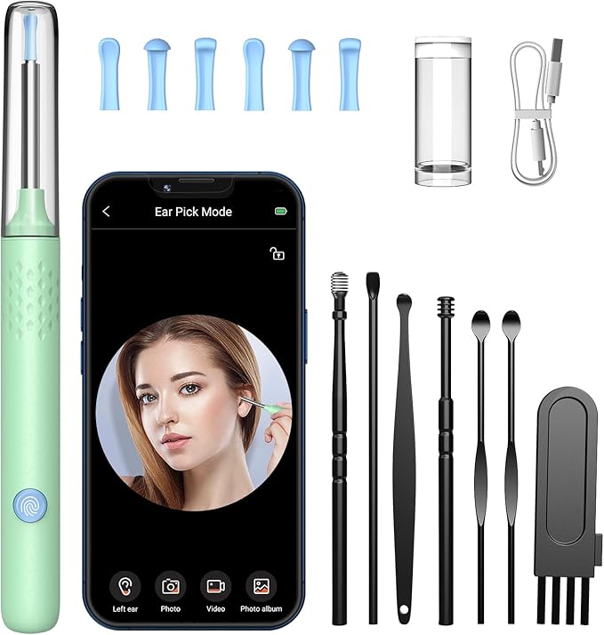 - High light led: Equipped with 6 high-brightness LED lights, 3.5mm inner diameter lens with 1080P full HD camera, which greatly enhances the brightness and sharpness of the image in ear canal. Making your earwax removal more completely and safely.