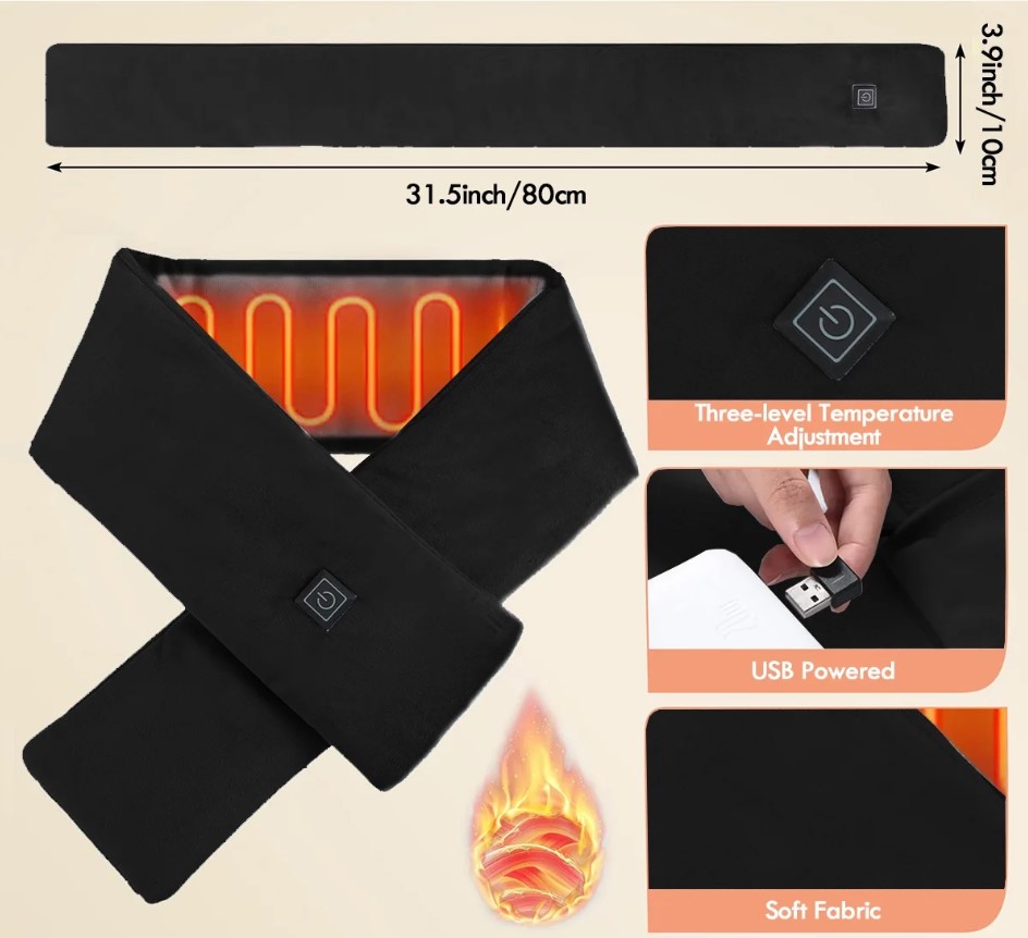 Let the heated scarf warm you anytime, anywhere: USB power bank power supply, as long as the power bank has electricity, the heated scarf can continue to heat up, outdoor climbing, going out shopping, playing in the snow, the heated scarf can keep you warm