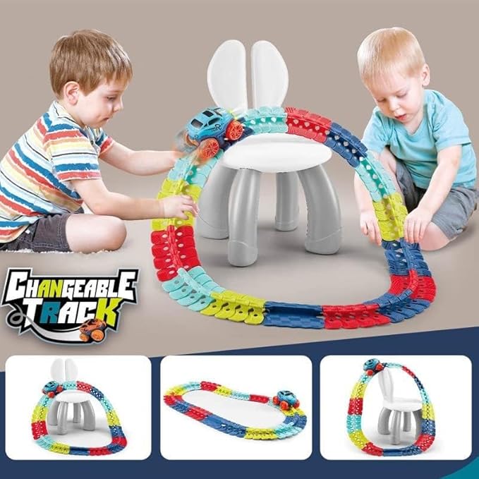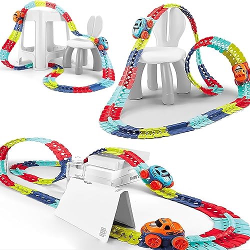 - Diy Building Game: Bend, loop, flex these bendable race tracks in different ways, various shapes, and inspire creativity and imagination alone or with siblings and friends; this glow in the dark race track is a great educational toy that encourages kids to develop motor skills, thinking skills, problem-solving skills, teamwork.