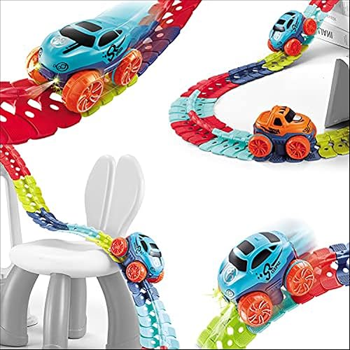 - Flexible Track with Race Car: Keep kids excited with hours of building toy games! Practice your child’s hands-on skills in play, give your age 4-7 boys stimulating, creative, hands-on activity. the rainbow race car tracks easily connects in a snap together,included LED one race car which with two different car shells .