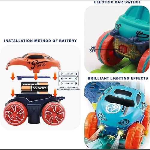 - Safety & Eco-Friendly: LED light-up race car,made of high quality material, durable and not easy to fade. Our battery-operated toy cars are made of BPA-free & quality plastic,not bad smell. Sleek and smooth corner, will not hurt your kids’ hands.Installed batteries, turn on the power switches then put the cars on track to shuttle. It will be a great gift option for car lovers little boys.